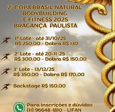 A contagem regressiva começou! A Liga de Fisiculturismo de Atletas Naturais (LIFAN) já abriu as inscrições para o campeonato mais esperado do ano: a 2ª Copa Brasil Natural Bodybuilding e Fitness 2025, que acontece em Bragança Paulista nos dias 13 e 14 de dezembro.